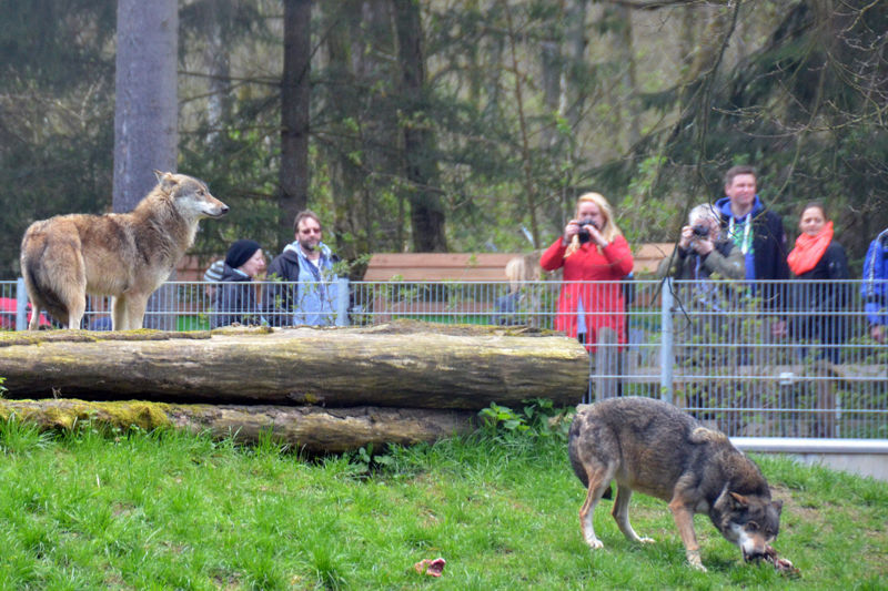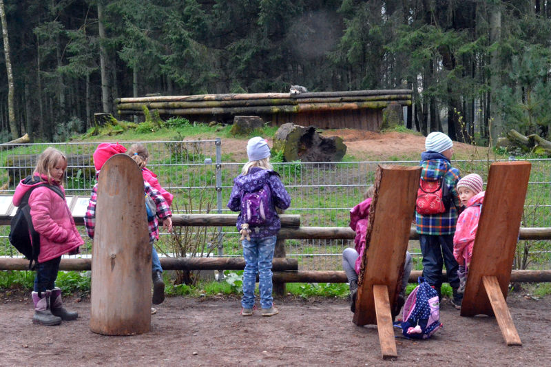 | Beginnend im Eingangsbereich an der handgeschnitzten Wolfsskulptur aus Eichenholz führt die Wolfsmeile über eine Vielzahl von Erlebnis- und Lernstationen rund um den Wolf zum mehr als 10.000m² großen Gehege der europäischen Grauwölfe. Die kommentierte Fütterung täglich um 15:30 Uhr bringt hier den Besuchern das Eekholter Wolfsrudel besonders nahe. Die kleineren Gäste der Wolfsmeile werden von den Maskottchen Kurt, Susi und Ulf auf ihrem Weg begleitet. Weitere Elemente sind u.a. ein begehbares Märchenbuch und eine interaktive Hörstation. | ![]() |