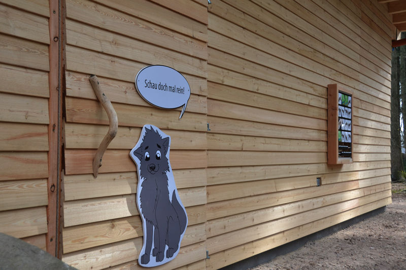 Zentraler Bestandteil der Wolfsmeile ist die Eekholter Wolfshütte, ein Ausstellungsgebäude mit großen Panoramascheiben, die allen Besuchern einen direkten Blick in das Wolfsgehege ermöglichen. Aug in Aug mit dem Eekholter Wolfsrudel vermitteln hier interaktive Lehrschauen viel Wissenswertes u.a. zu den Schwerpunktthemen Lebensraum, Nahrung, Sinnesleistung und Kommunikation der Wölfe. Mit Hilfe eines Smilomaten kann dort jeder die Ausdruckskraft seiner eigenen Mimik und Gestik ermitteln. Die jüngeren Besucher lernen über die Kommunikation der Wölfe vieles spielerisch mit Hilfe eines Memorys. |